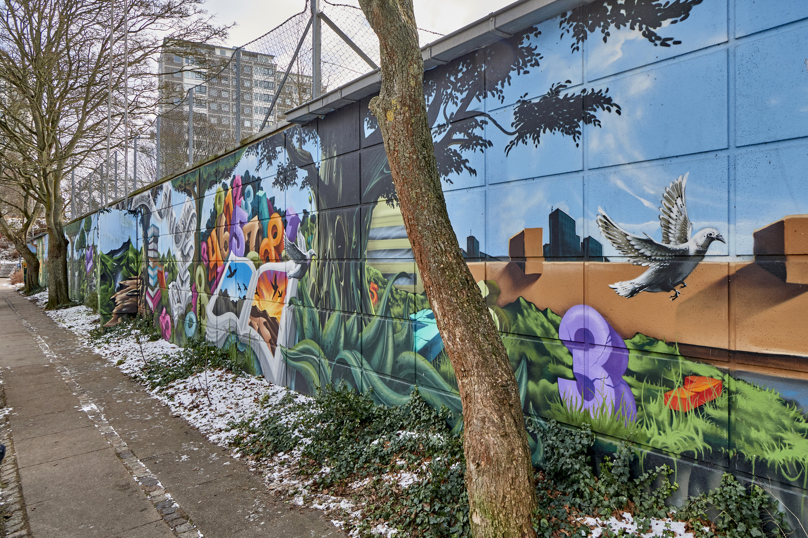 Gå på opdagelse i Frederiksbergs udendørs galleri, og oplev de mere end 28 spændende gavlmalerier, der findes i byen.